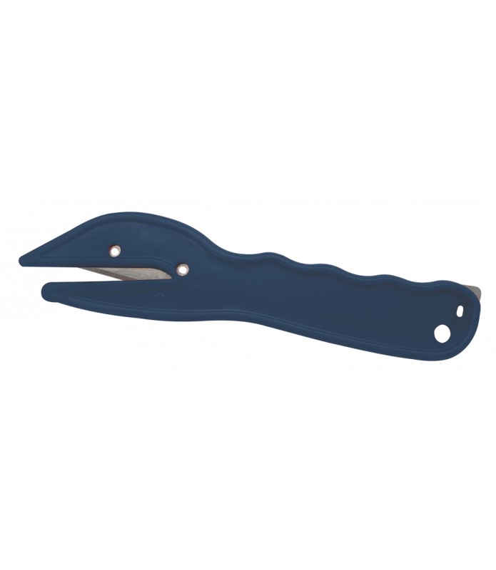 Nůž pro řezání fólie stretch, šňůr, pásků a pro řezání lepicí pásky na kartonech. Speciální konstrukce snižující riziko zranění zaměstnance nožem. Obsahuje skrytou čepel, aby nedošlo k náhodnému zranění. Bez možnosti výměny čepele. Použití elastického polypropylénu způsobuje, že výrobek se nepoláme na části, ale zůstane v jednom celku. Úroveň detekovatelnosti je závislá na nastavení detektoru kovů, výrobního prostředí a druhu vyráběné potraviny. V modré barvě, usnadňuje detekci v potravinách. Splňují požadavky HACCP. Je možno používat v systému BRC.