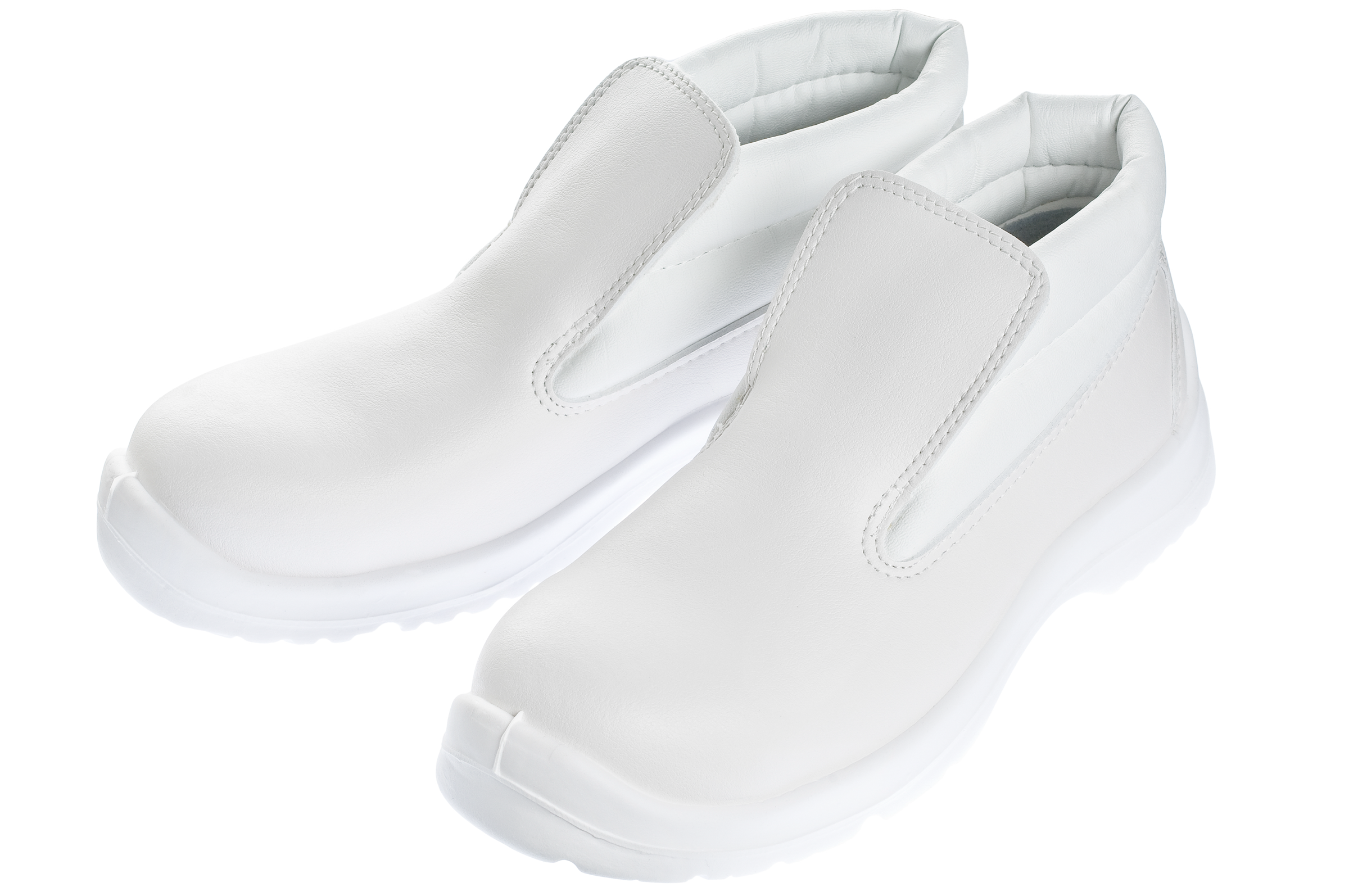 Kotníkové, nazouvací provedení. Velmi pohodlný model obuvi značky Durasafe. Protiskluzová, antistatická, dvojsložková, polyuretanová podrážka (SRC), výborně izoluje od chladné podlahy, pod patou tlumí nárazy (antishock). Syntetický svršek z materiálu Microfaser je omyvatelný, odolný vůči bílkovinám a tukům. Vyztužená ocelová špice. Dodáváno v bílé barvě.