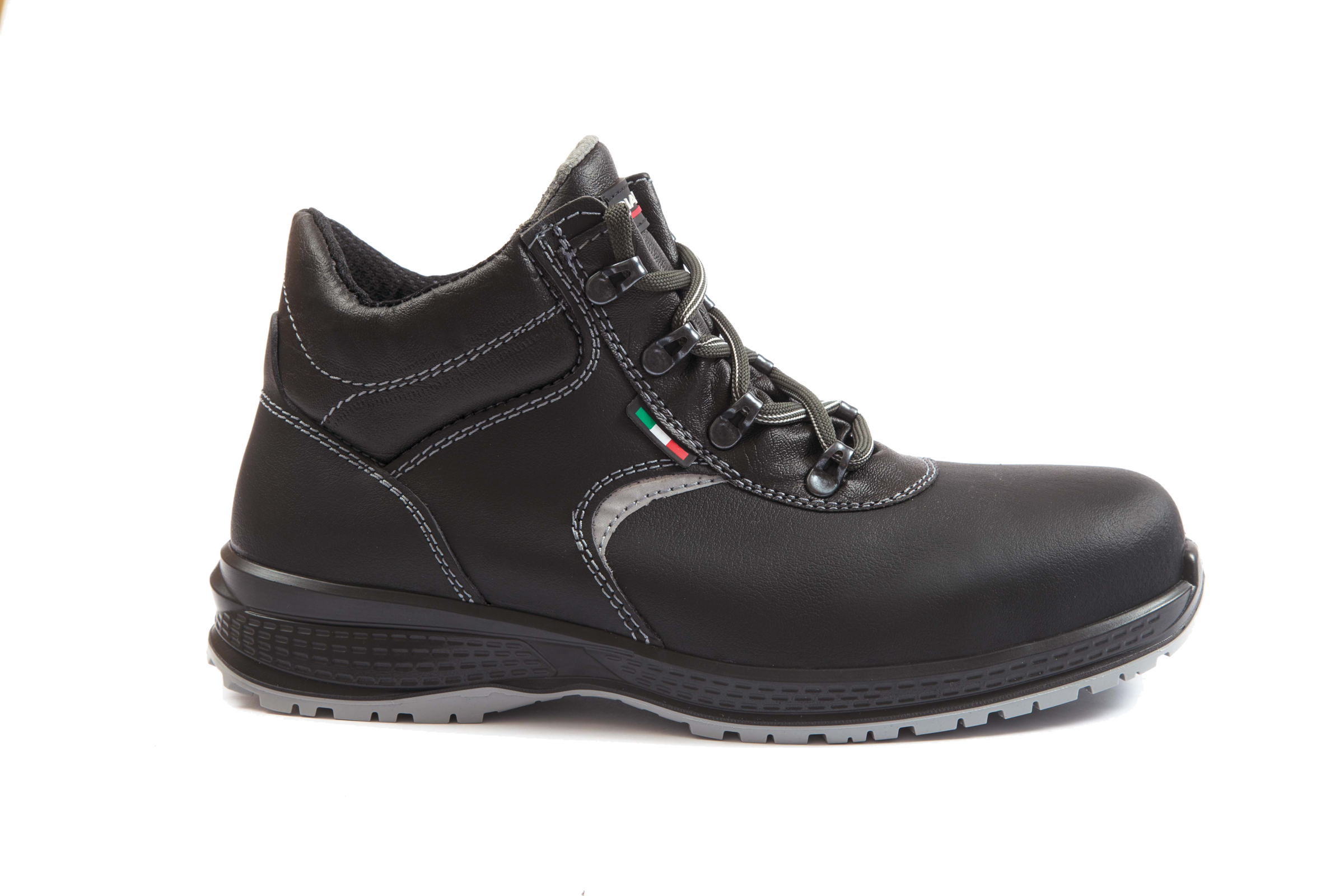 Bezpečnostní pracovní, kotníková, šněrovací obuv s bezpečnostní polymerovou, anatomicky tvarovanou špicí. Síla WRU kůže 1,8-2,0mm, textilní podšívka odolná proti oděru. Měkký, lemovaný a polstrovaný jazyk. Bota splňuje požadavky na odolnost proti skluzu na šikmých střechách podle UNI 11583: 2015. Vložka z flexibilní, antiperspirační, kompozitní tkaniny podle EN 12568. Podrážka KUBE polyestethan, antistatická, odolná proti hydrolýze, ISO 5423:92, protiskluzová ve třídě SRC.