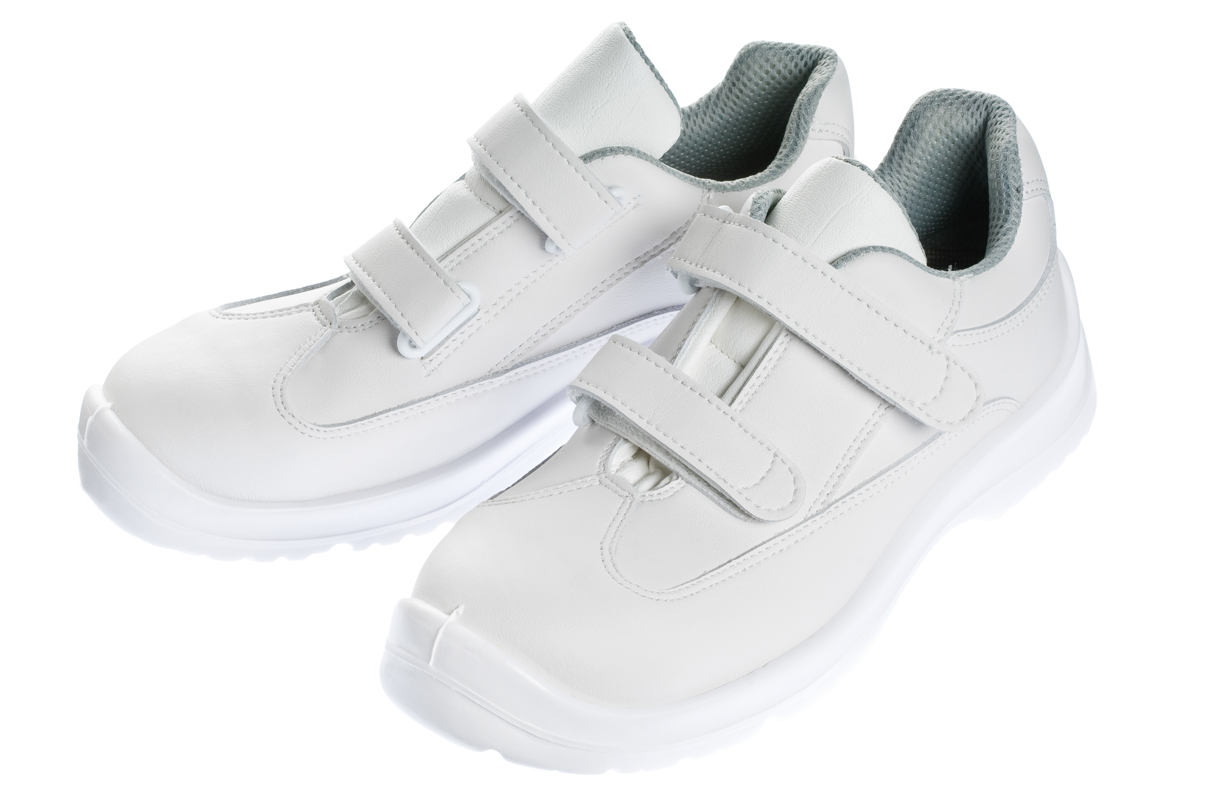 Polobotka se zapínáním na suchý zip. Velmi pohodlné modely obuvi značky Durasafe. Protiskluzová, antistatická, dvojsložková, polyuretanová podrážka (SRC), výborně izoluje od chladné podlahy, pod patou tlumí nárazy (antishock). Syntetický svršek z materiálu Microfaser je omyvatelný, odolný vůči bílkovinám a tukům. Vyztužená ocelová špice. Dodáváno v bílé barvě.